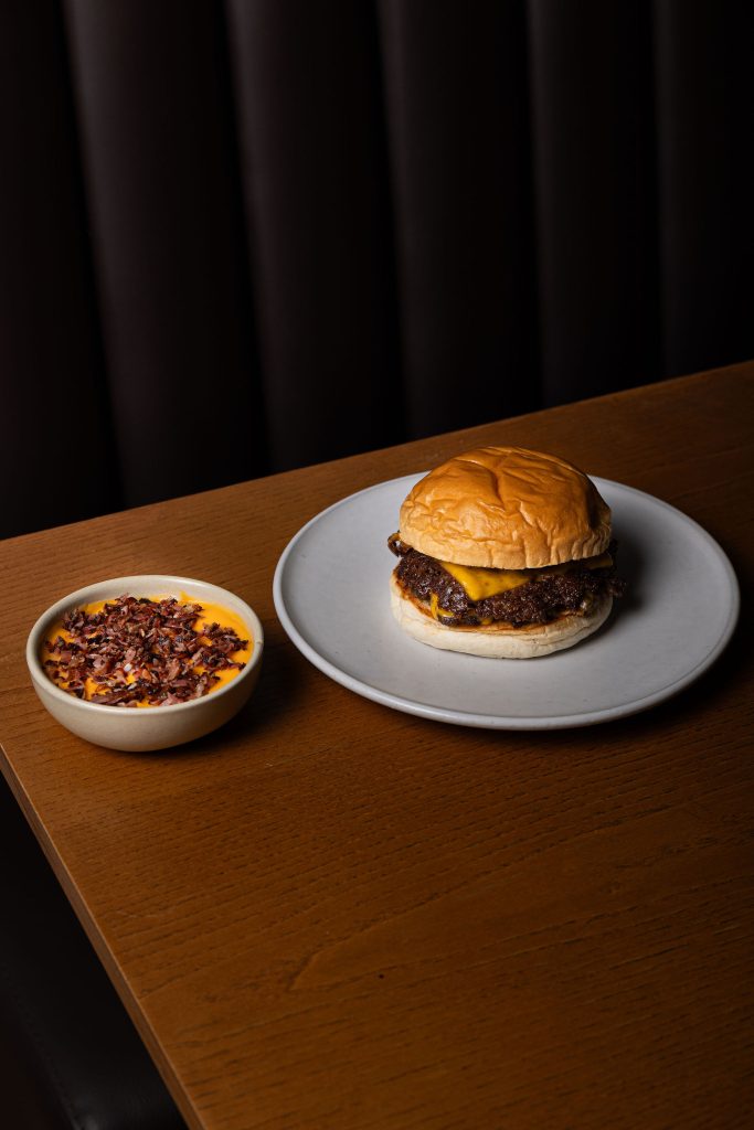 O clássico americano com sotaque texano. Smash burger prensado com cebola na chapa, cheddar, pickles e molho da casa. Se procuras sabor com intensidade, encontras aqui.
