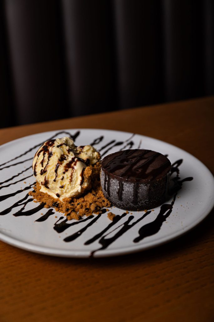 Um irresistível bolo de chocolate cremoso, servido quente e acompanhado por uma generosa bola de gelado de nata. A combinação